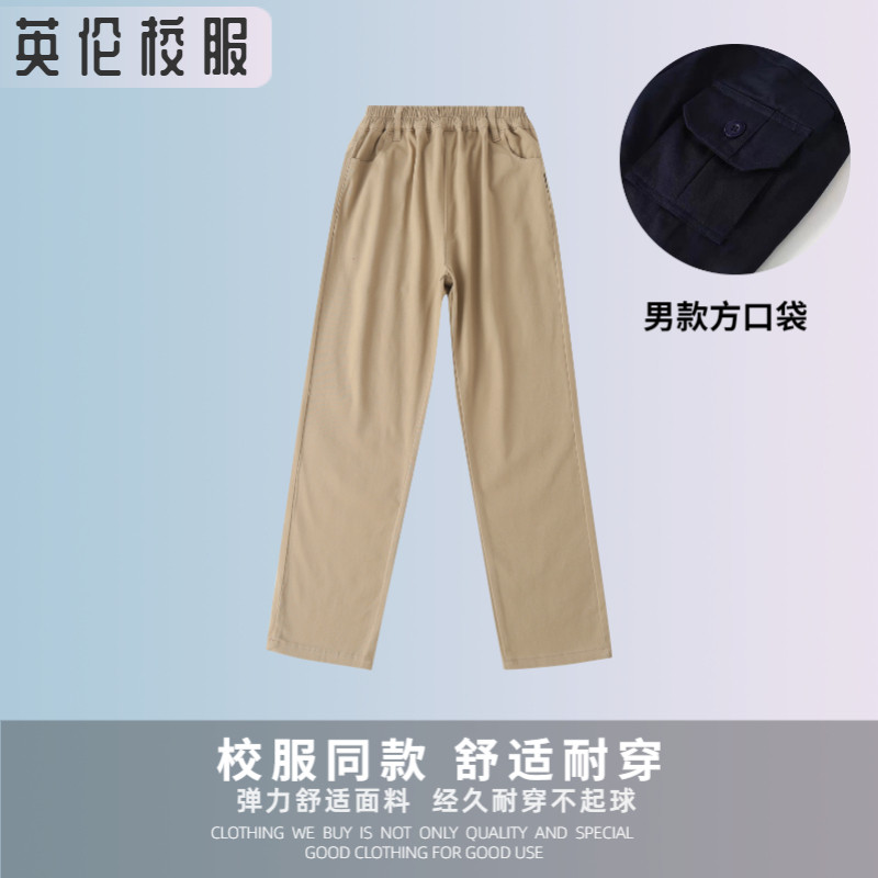 男女童校服 直筒西服弹力裤 英伦风春秋校服长裤 卡其色休闲裤