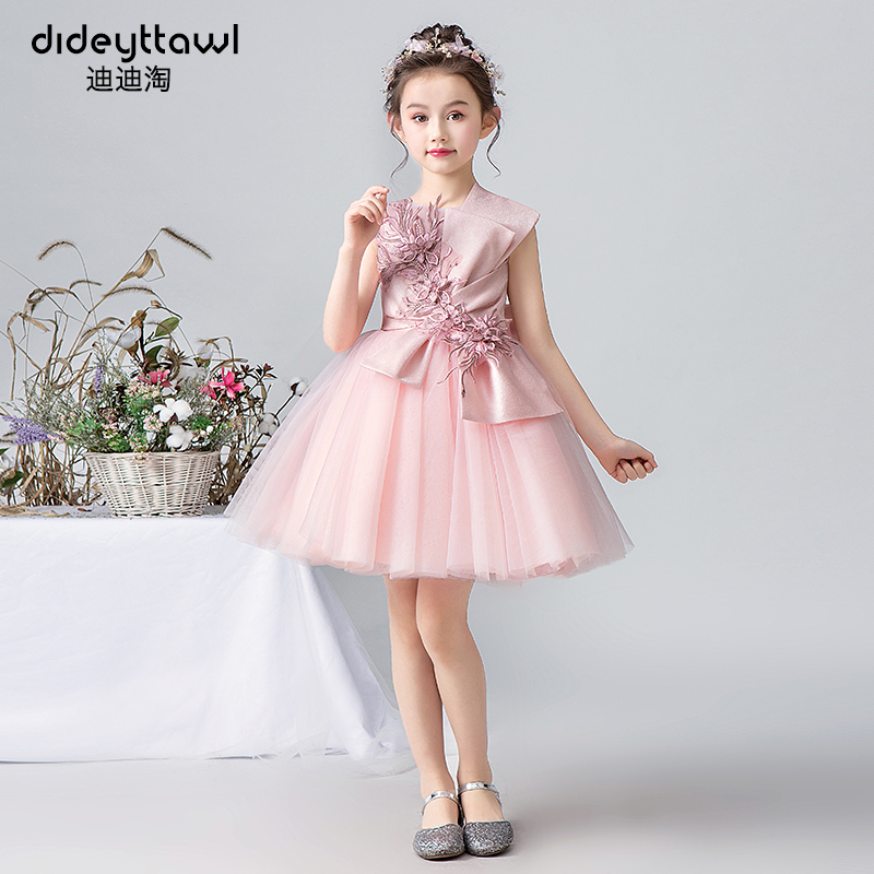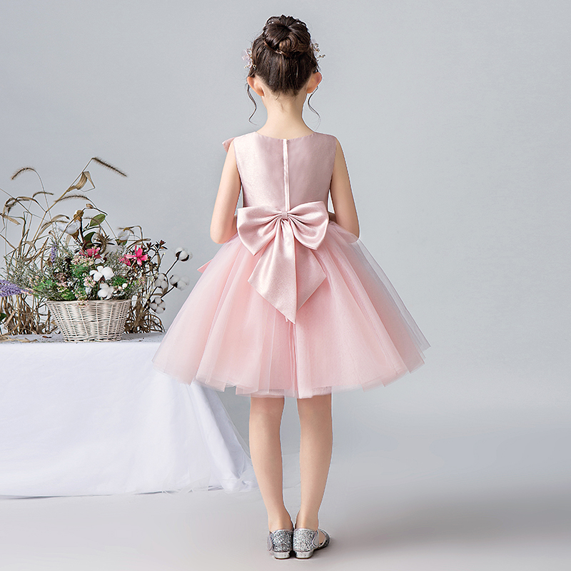 儿童礼服公主裙女童主持走秀蓬蓬纱小女孩洋气生日演出服短款 粉色