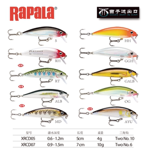 芬兰进口 05数秒游侠翘嘴鲈鱼路亚饵 Rapala乐伯乐沉水米诺XRCD07