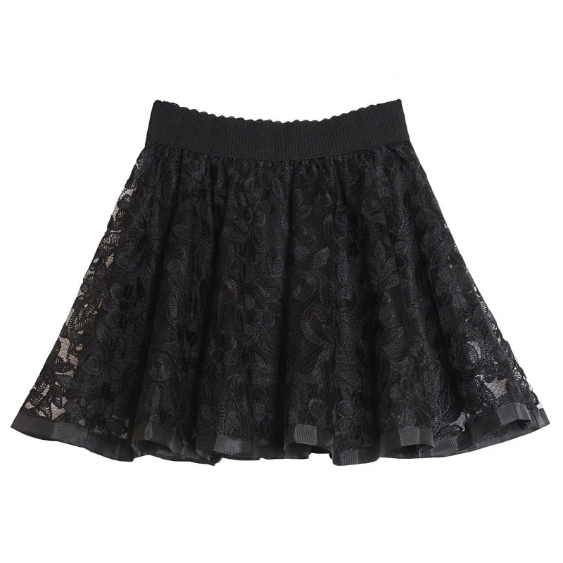 蓬蓬裙大摆裙子半裙 短款 春夏季 蕾丝伞裙半身裙黑色a字高腰短裙女