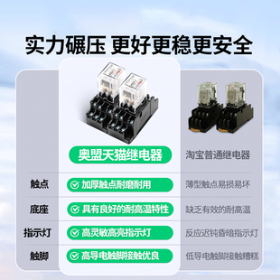 中间继电器24V直流220V交流12vHH52P小型电磁继电器8脚14脚带底座