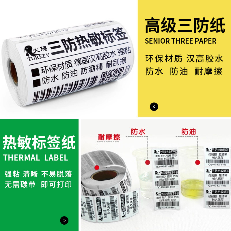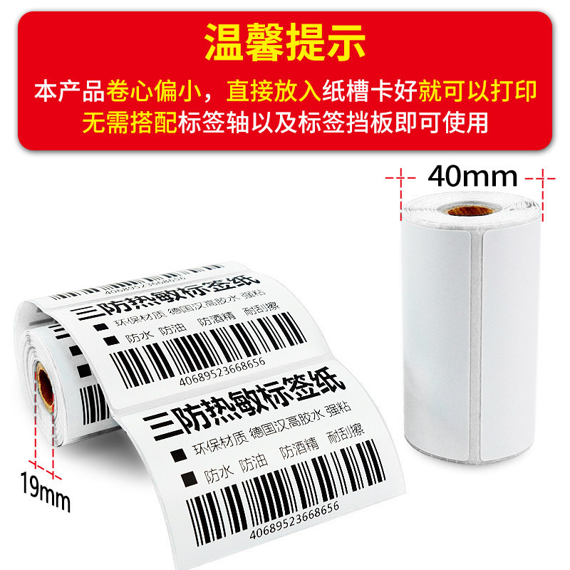 小卷不干胶标签纸75 60x40菜鸟入库上架标签打印纸三防热敏纸吊牌超市防水奶茶价格条码 贴纸 便携式