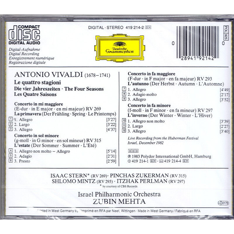 中图音像 小提琴唱片 维瓦尔第 祖宾梅塔指挥 进口CD碟片 四季