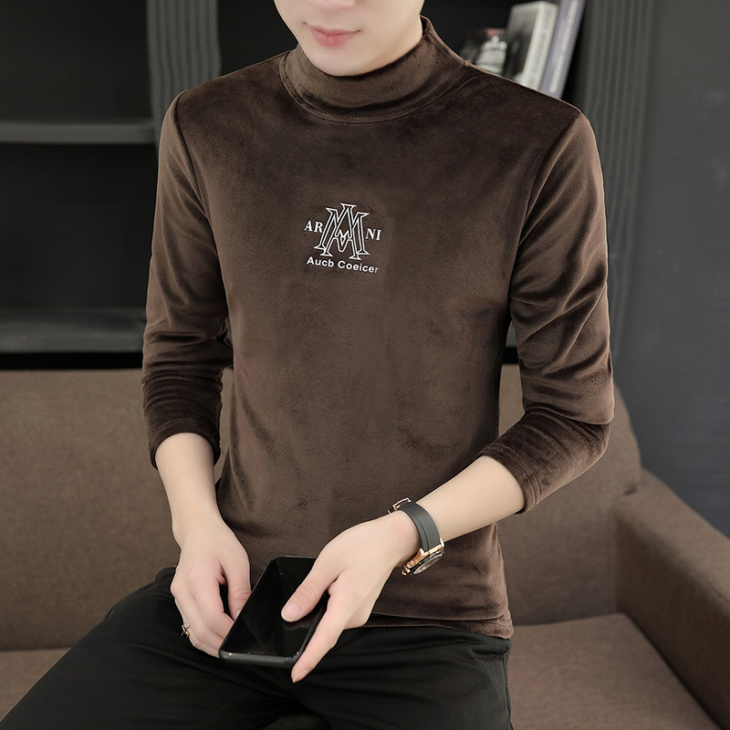 内搭双面绒半高领打底小衫 t恤中领秋冬韩版 衣服潮牌卫衣 长袖 男士