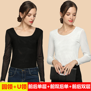 纱网外穿百搭春季 蕾丝2019新款 内搭上衣夏天 女长袖 黑色网纱打底衫