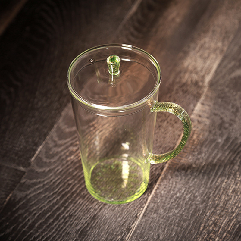 茶与器 自慢堂玻璃杯绿茶杯绿彩渣底马克杯带盖水杯茶具如沐春风