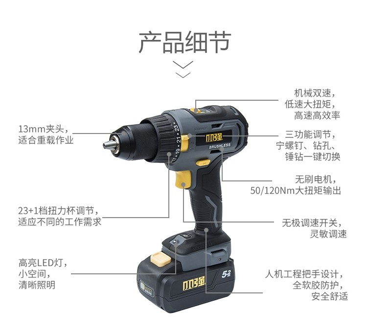日本大亿无刷手电钻锂电双速冲击充电钻家用多功能电动螺丝刀钻孔