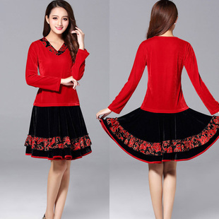 中老年人女装 保暖毛衣服 秋冬加绒加厚一体绒针织旗袍领上衣妈妈装