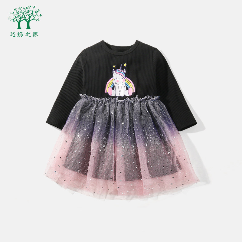 闪亮纯色收腰连衣裙子潮 薄款 2024年新款 秋冬加绒气质网纱拼接女装