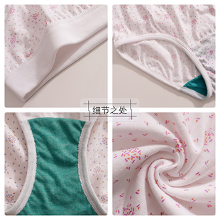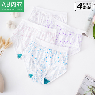 宽腰妈妈三角裤 4条ab内裤 印花宽松大码 身高腰抗菌短裤 女士纯棉裤