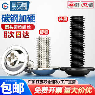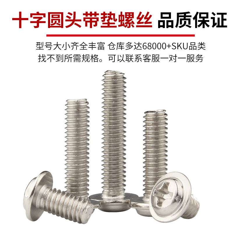 固万基镀镍十字圆头螺丝带垫机丝螺钉盘头带介螺丝钉M2m2.5M3M4M5