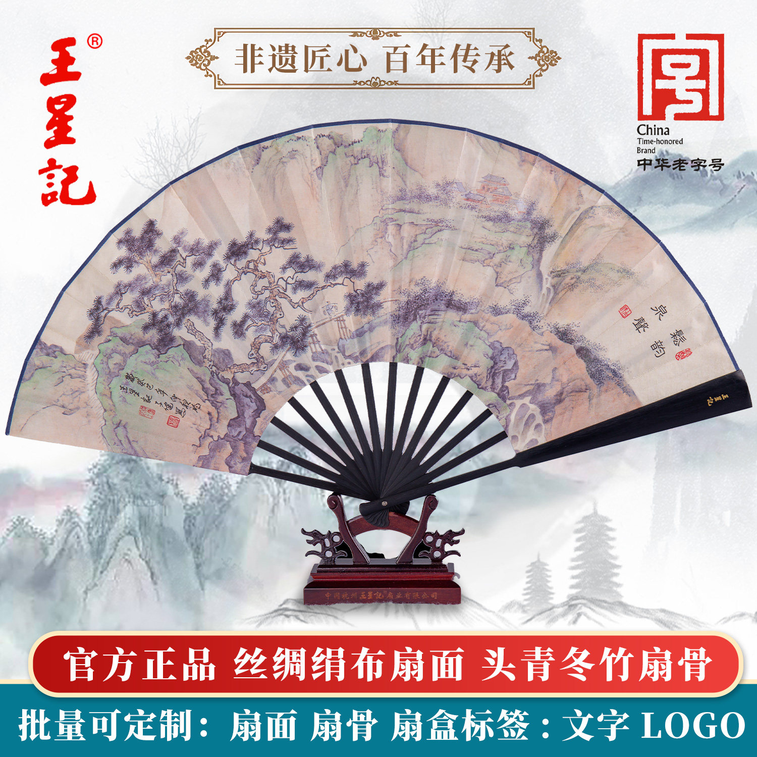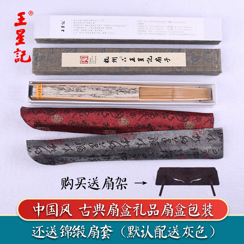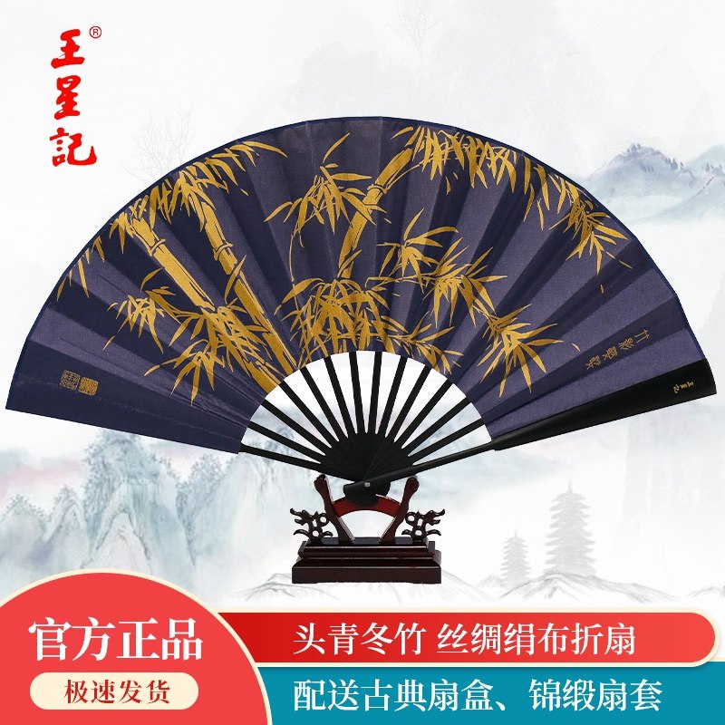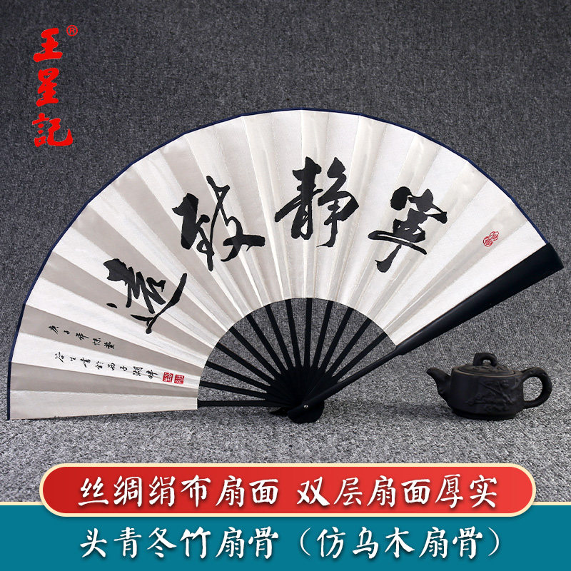 王星记扇子折扇男中国风古风男扇定制夏季 汉服随身黑色绢扇礼品扇
