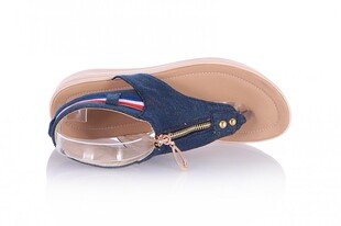 松糕底厚底夹脚淑女牛仔凉鞋 女潮中学生罗马凉鞋 夹脚帆布凉鞋 韩版