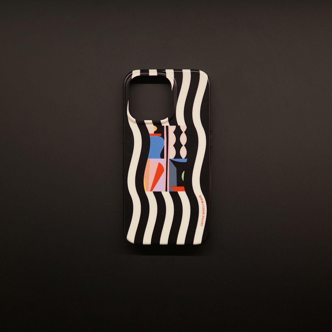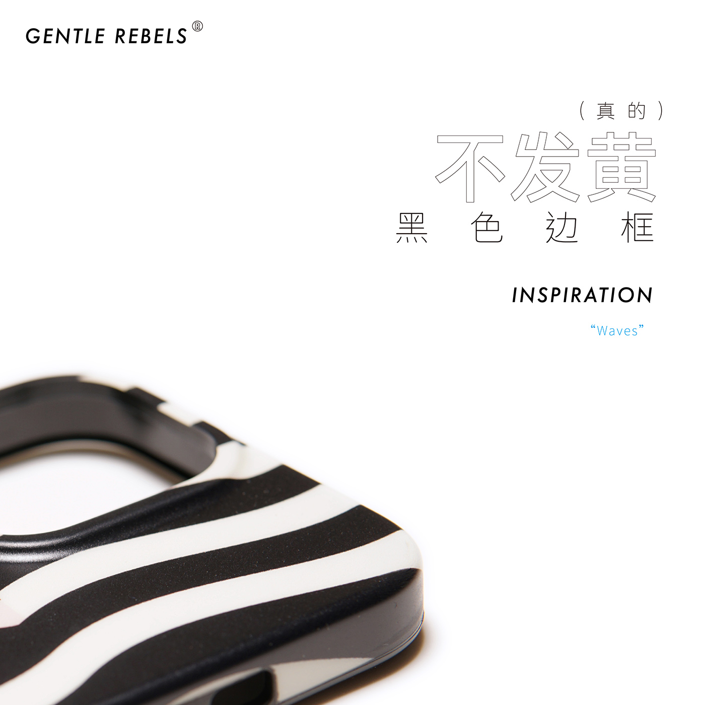 黑白撞色小众艺术家 极简单几何文艺iphone14设计师款 GENTLE REBELS波浪纹ins手机壳适用苹果15promax中古经典