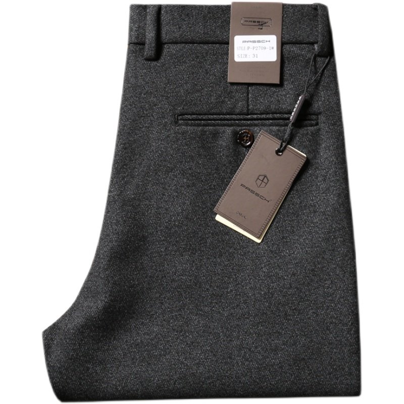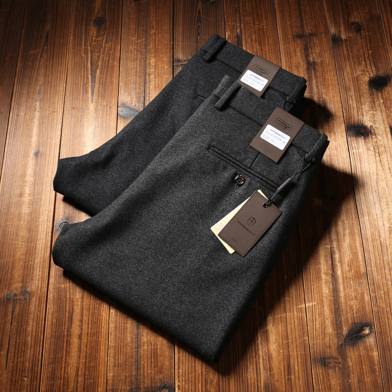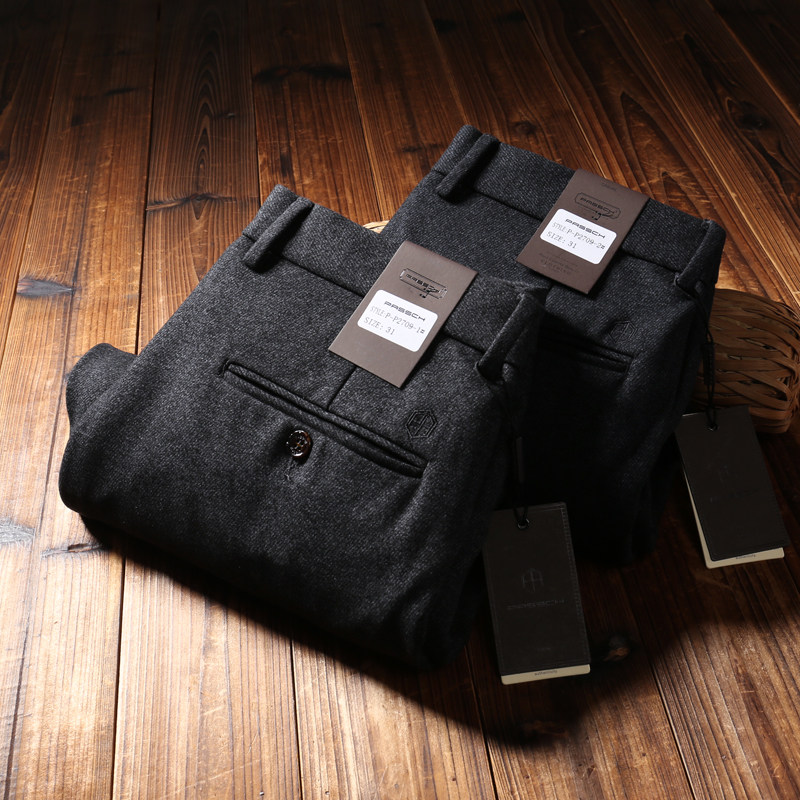 直筒宽松商务休闲裤 呢子磨毛免烫男士 毛呢弹力男裤 欧洲站秋冬厚款