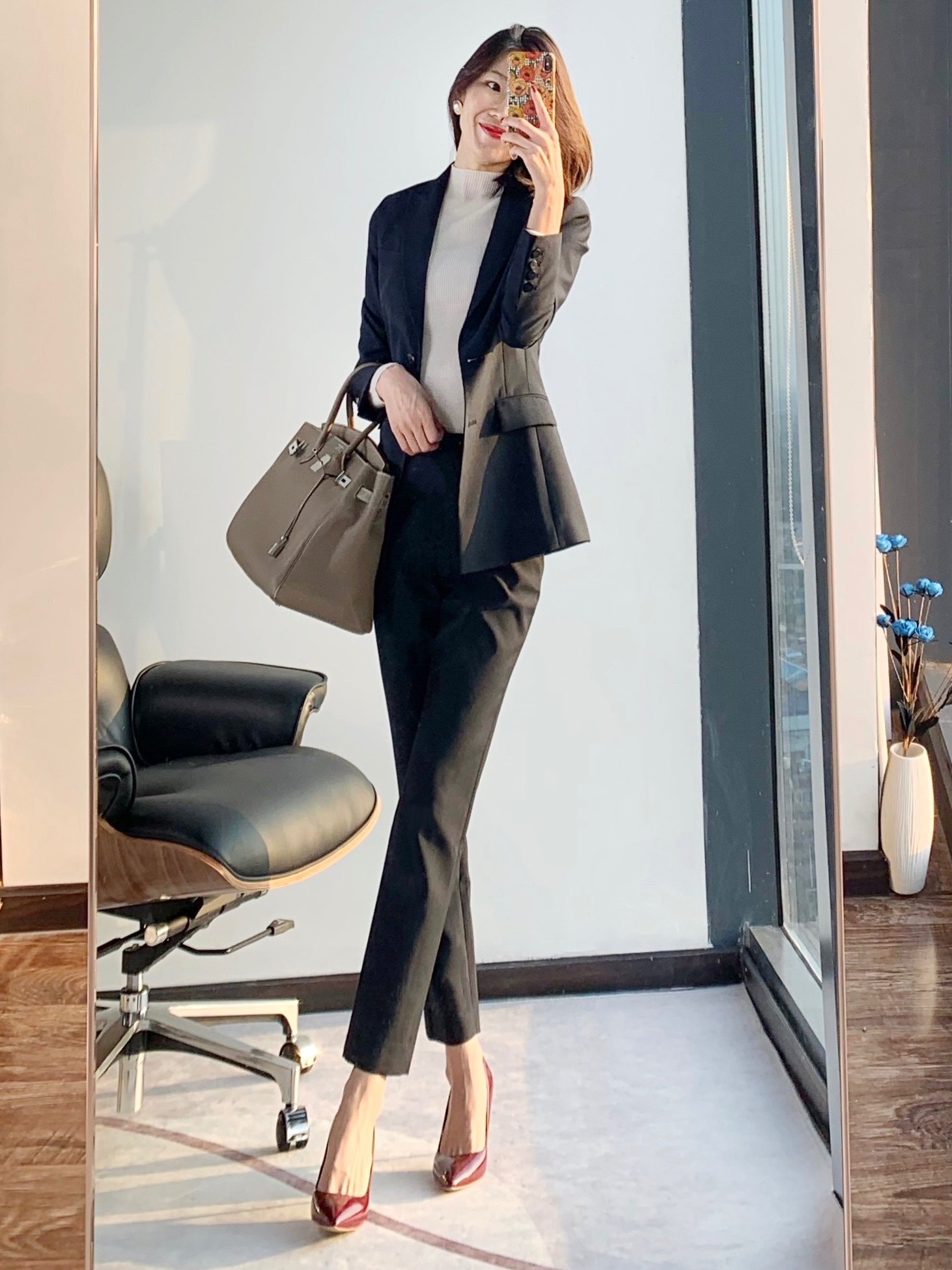 子职业西裤 女秋冬加绒裤 拖地女裤 垂感高腰窄版 藏蓝色西装 直筒裤 裤