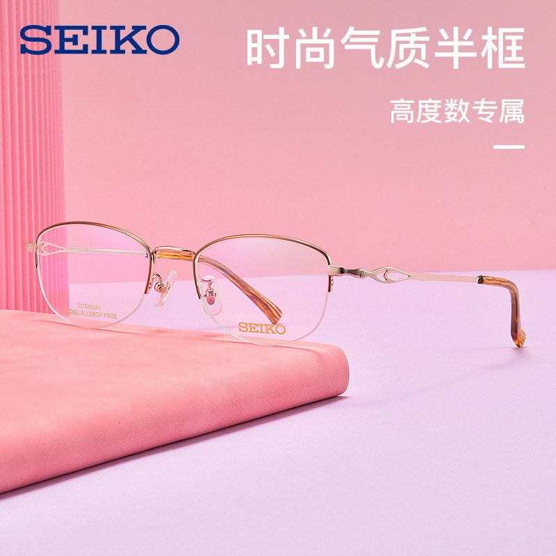 精工眼镜框钛材眼镜架近视女 HC2025 13克超轻半框眼镜可配高度数