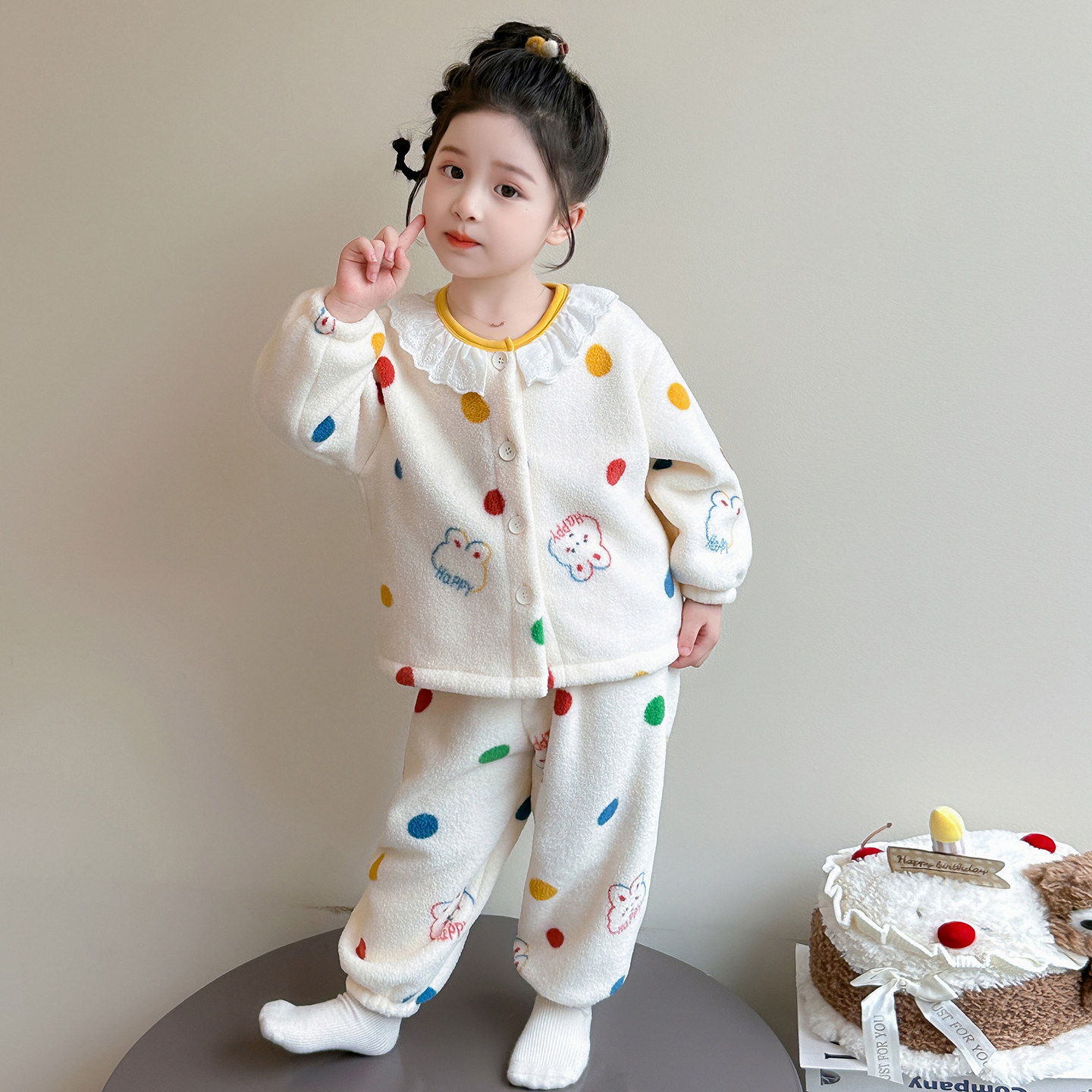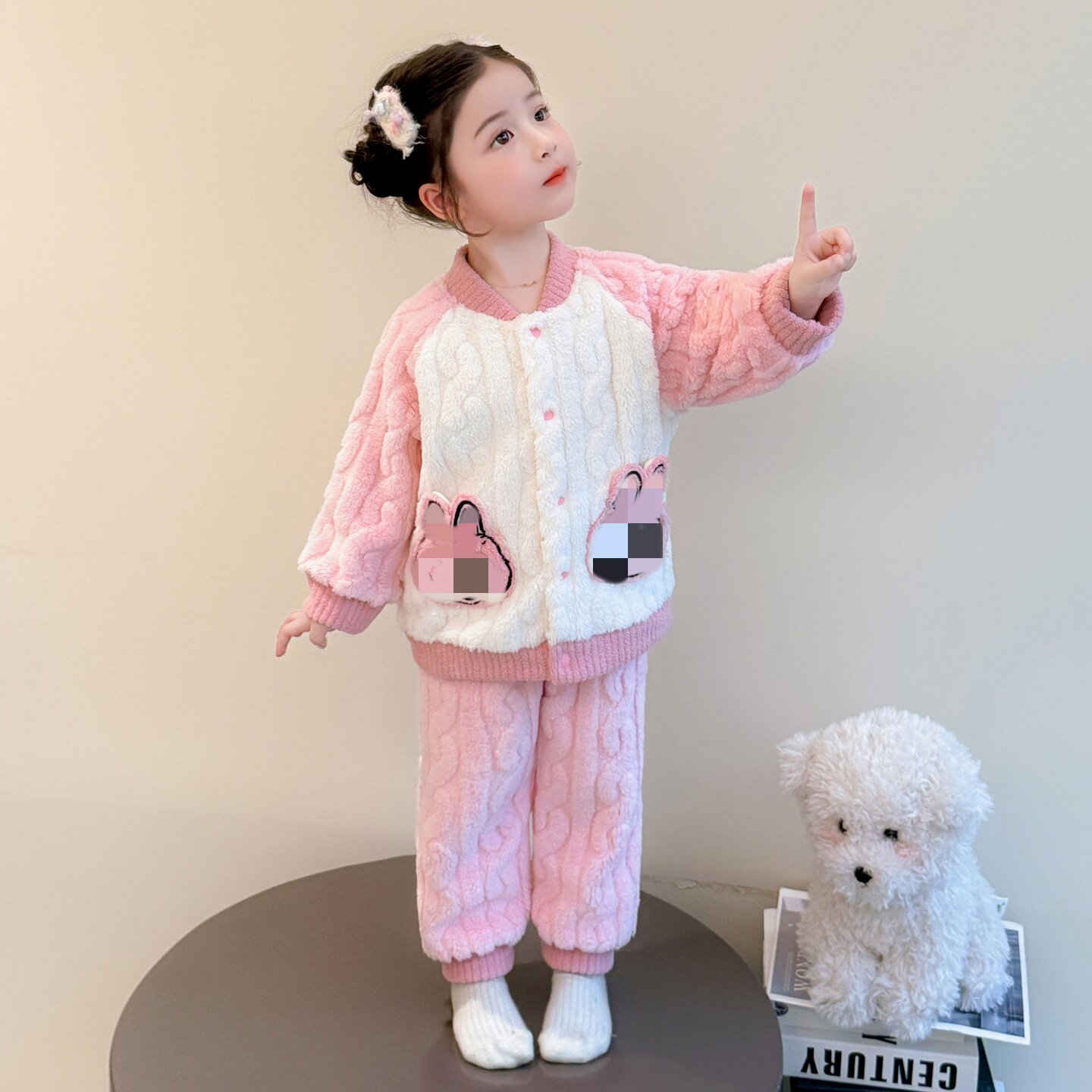 儿童睡衣2025新款 秋冬法兰绒加绒加厚宝宝男女童珊瑚绒家居服套装