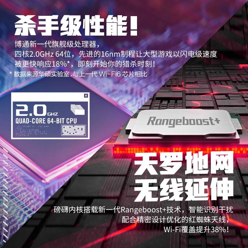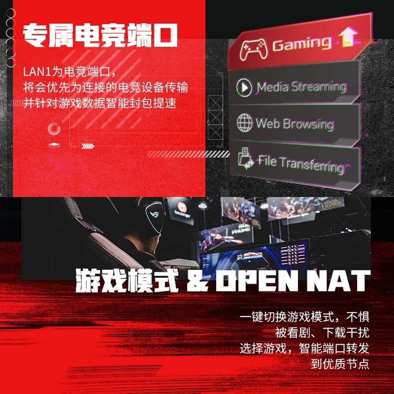 wifi6游戏加速 高速华硕 电竞家用大户型千兆AP功能 AX6000中央路由 AImesh组网 ROG红蜘蛛路由器