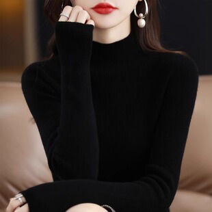 内搭超保暖针织衫 时髦配大衣修身 女2024秋冬新款 半高领加厚打底衫