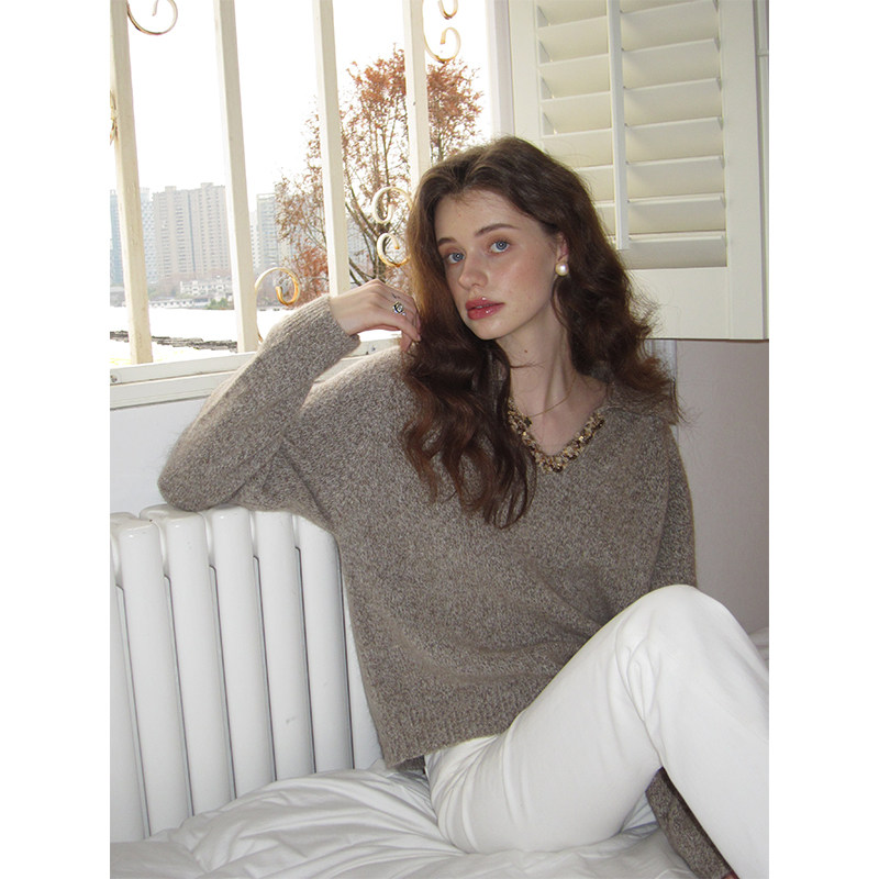 ZHUYIYI原创设计山羊绒羊毛毛衣女慵懒风高级感秋冬季 v领宽松内搭