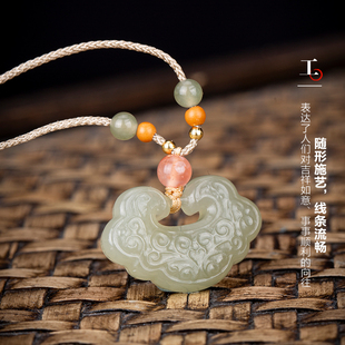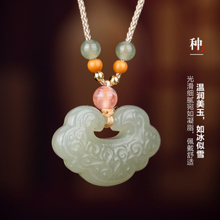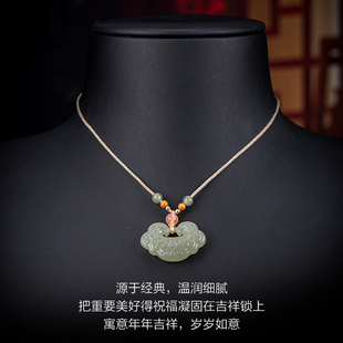 七彩云南和田玉青白玉吊坠如意长命锁玉坠晴水玉七夕节精品礼物