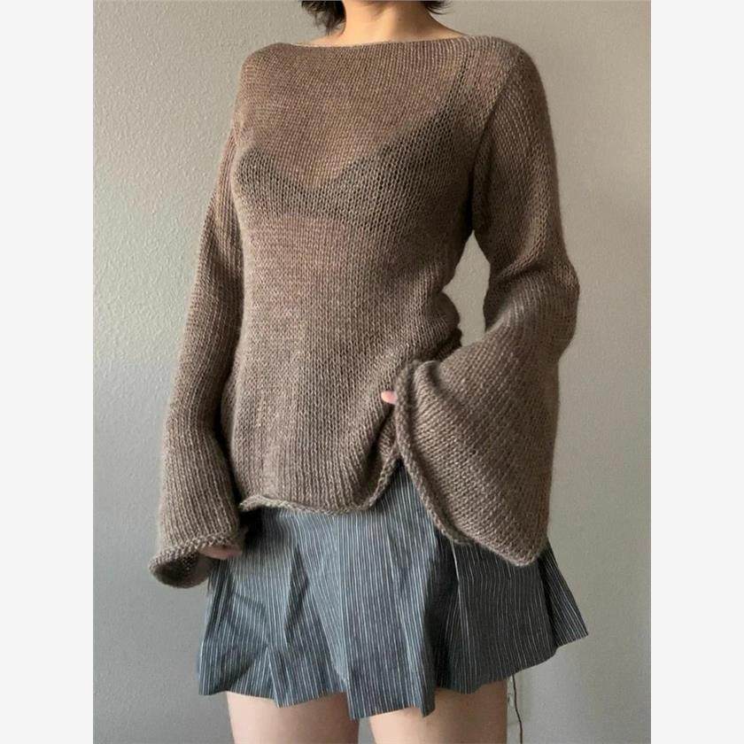 Women Knitted Pullover Y2K Crochet Sweaters Casual Tops Back