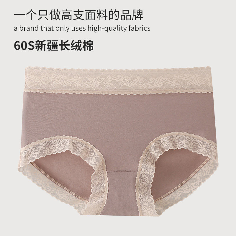 60支长绒棉内裤 女士纯棉抗菌裆中腰蕾丝无痕舒适包臀女生三角短裤
