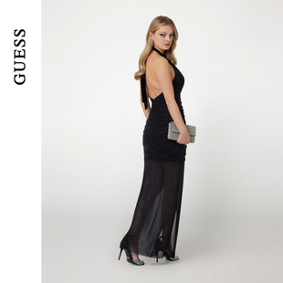 新款 吊带连衣裙女2025冬季 千金挂脖长裙高级感裙子 法式 灰尘邓邓