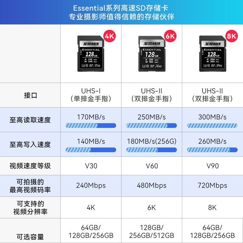 至誉科技Essential系列v30SD相机内存sd高速存储卡专业摄影4K视频