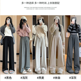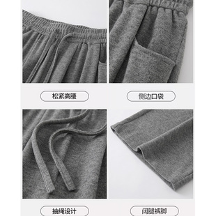 宽松直筒休闲加厚羊羔绒加绒阔腿裤 2025新款 子女秋冬季 灰色糯米裤
