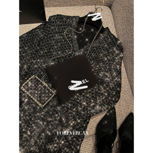 外套 高级感客订金银丝腰系带针织开衫 Forevercan女装 2024早春新款
