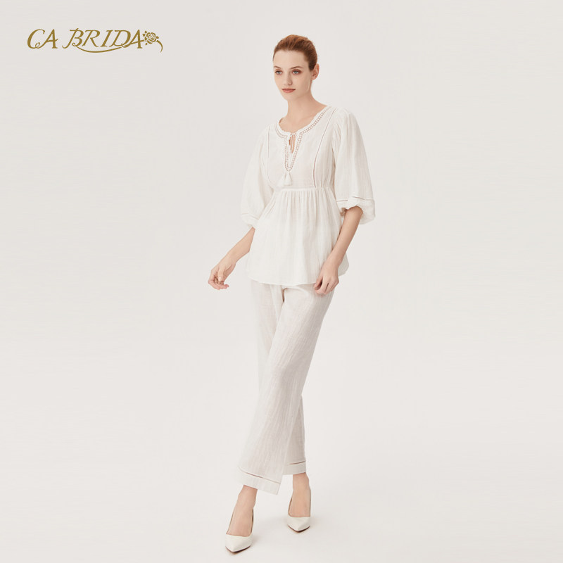 2025新款 纯棉长袖 时尚 轻奢风大码 轩靓睡衣女春秋季 家居服套装 秋款
