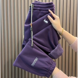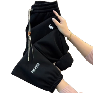女冬季 显瘦休闲运动裤 新款 时尚 宽松刺绣束脚哈伦裤 加绒加厚卫裤