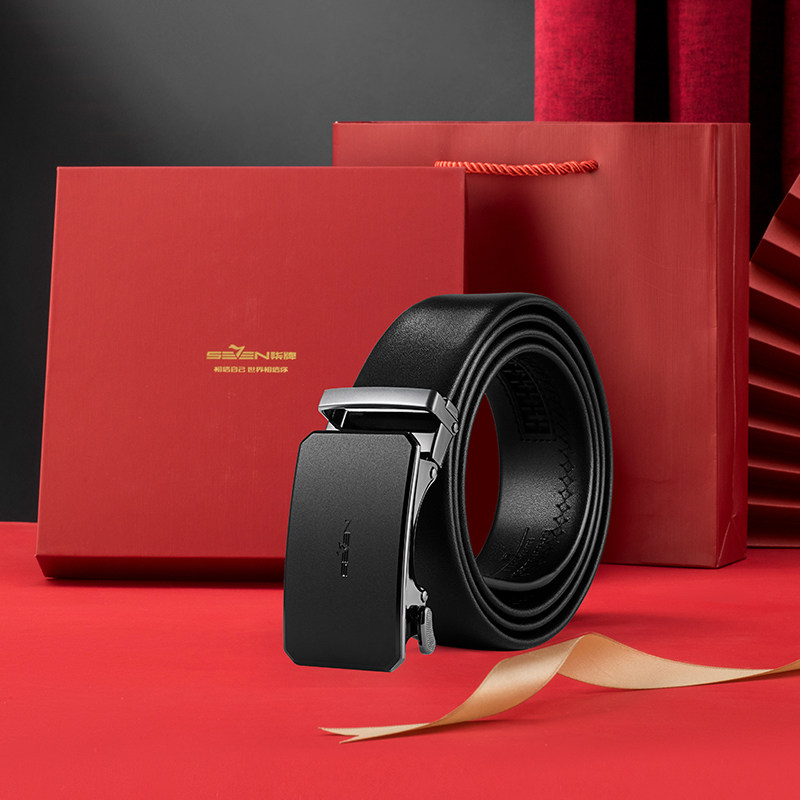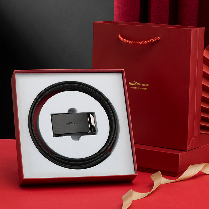腰带送男友礼物送七夕节礼盒装 青年商务男款 真皮皮带新款 柒牌男士