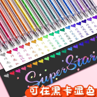 彩色闪光笔啫喱亮晶晶发光银光流沙变色儿童做手账 手帐专用珠光标记莹光做笔记闪亮金属轮廓闪粉水彩荧光笔
