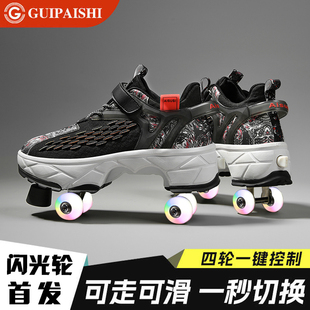 可走路成人变形鞋 男女童轮滑鞋 可收缩四轮 带轮带灯自动暴走鞋 新款