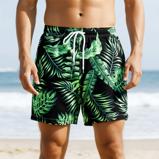 抽绳款 Amber外单海岛印花大码 可下水休闲海边冲浪泳裤 沙滩裤 男士