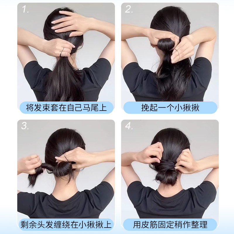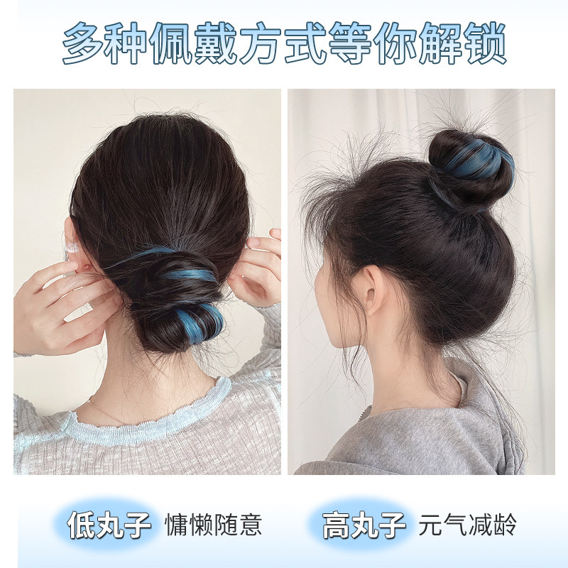 挑染丸子头假发髻盘发神器马尾辫发圈自绕花苞头假发包彩色头发条