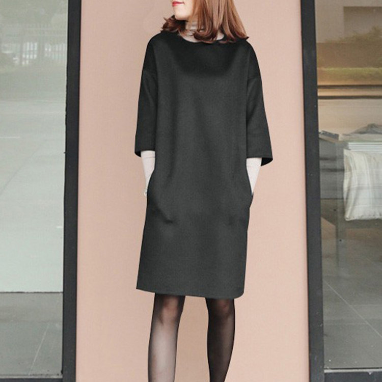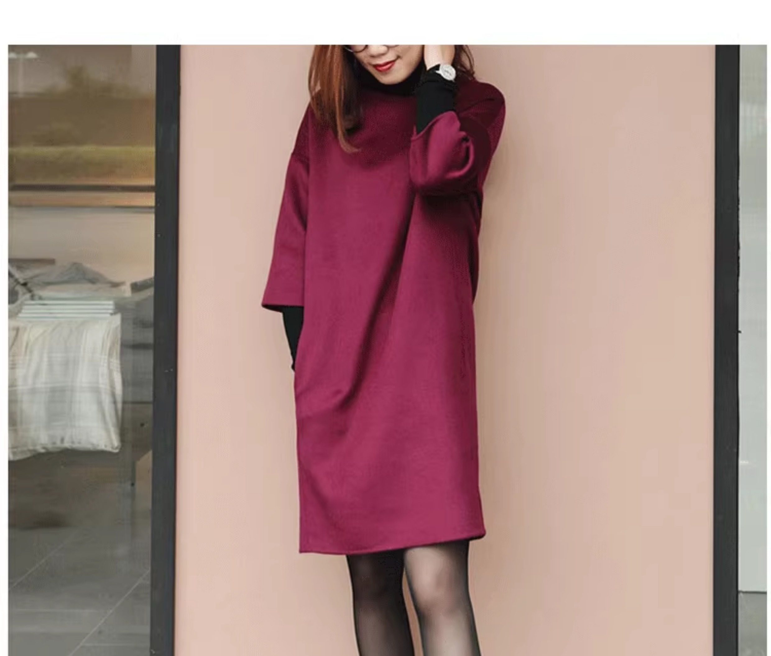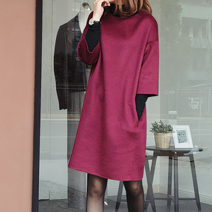 双面100%澳洲羊毛连衣裙羊绒2025秋冬七分袖 气质打底裙子宽松套裙