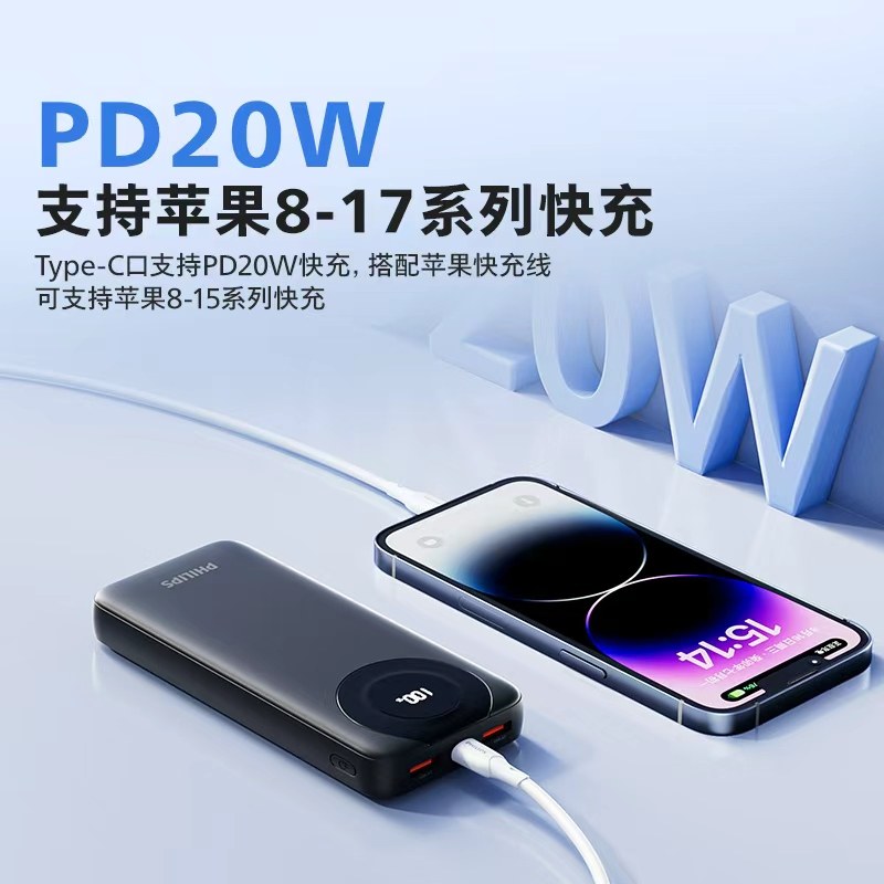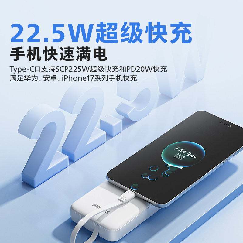 飞利浦充电宝22.5W快充20000毫安大容量便携移动电源适用安卓小米苹果手机官方正品 3C认证可上飞机