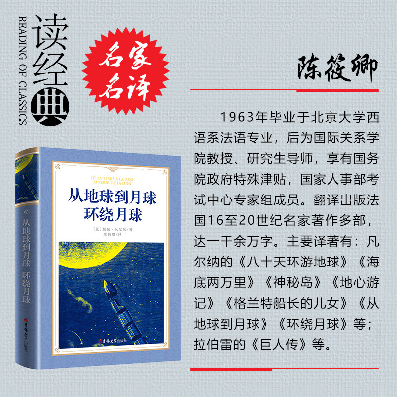 环绕月球世界经典 名著阅读中小学生名家名译原著完整版 无删减珍藏版 文学青少年版 从地球到月球 学生阅读书籍经典 名著书籍 软精装