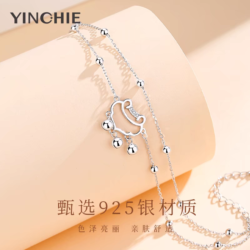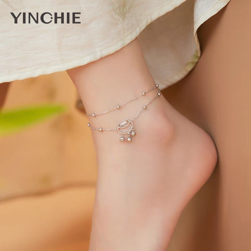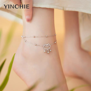 999纯银平安锁铃铛脚链女2025新款 脚绳不掉色生日礼物送女友刻字
