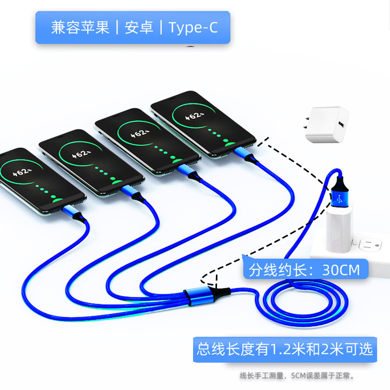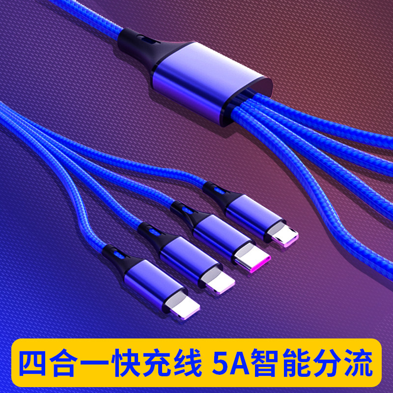 4个Typec一拖四数据线120w适用华为vivo荣耀iphone15苹果快充双type 双苹果充电线1拖三头tpye接口多头四合一
