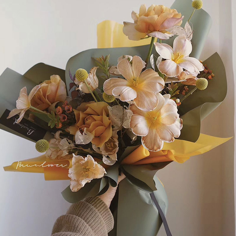 防水花束鲜花材料 卷筒包装 花中情 加厚晨雾哑光膜欧雅纸黑色韩式