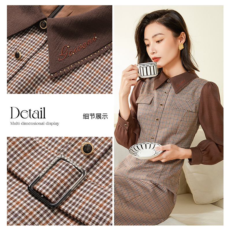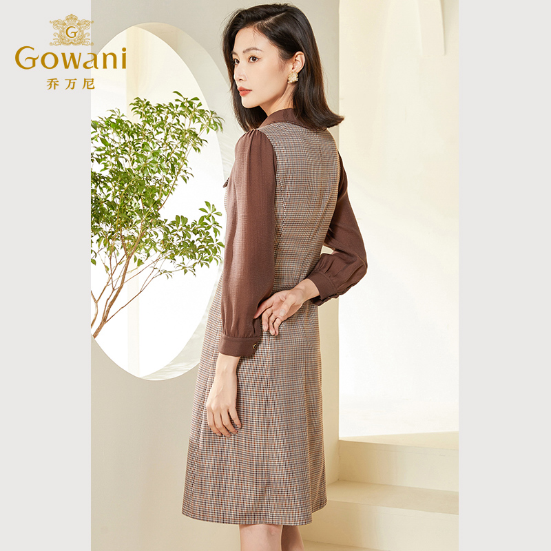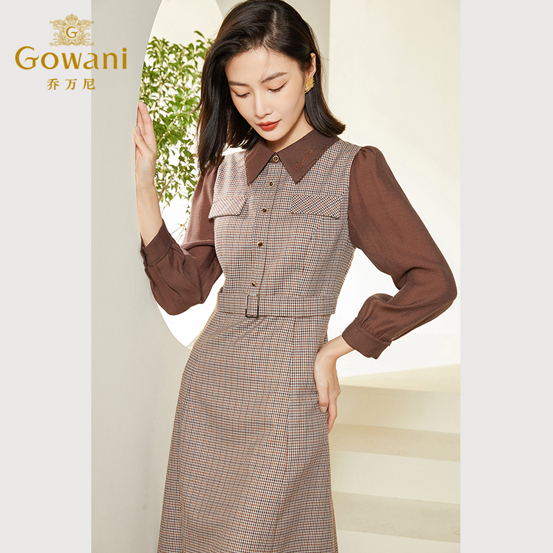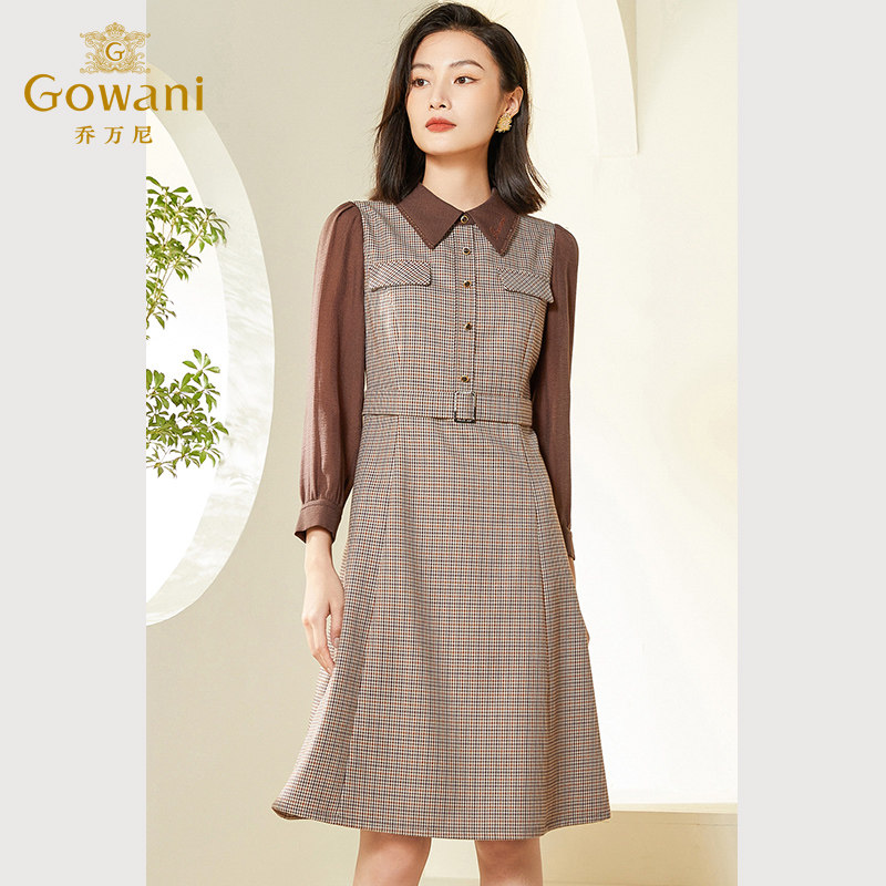 乔万尼新款 复古英伦风连衣裙好看流行气质优雅假两件设计EF3E856