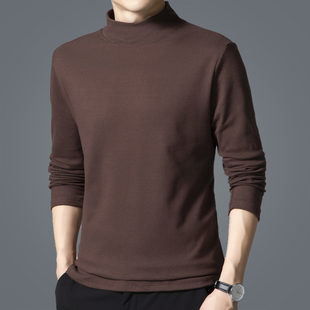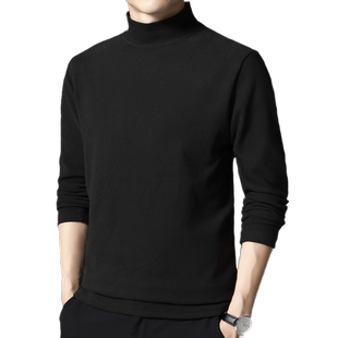 黑色t恤双面德绒打底衫 半高领保暖内搭秋衣长袖 男士 啄木鸟秋冬季