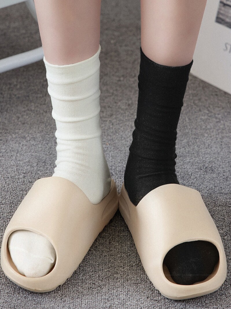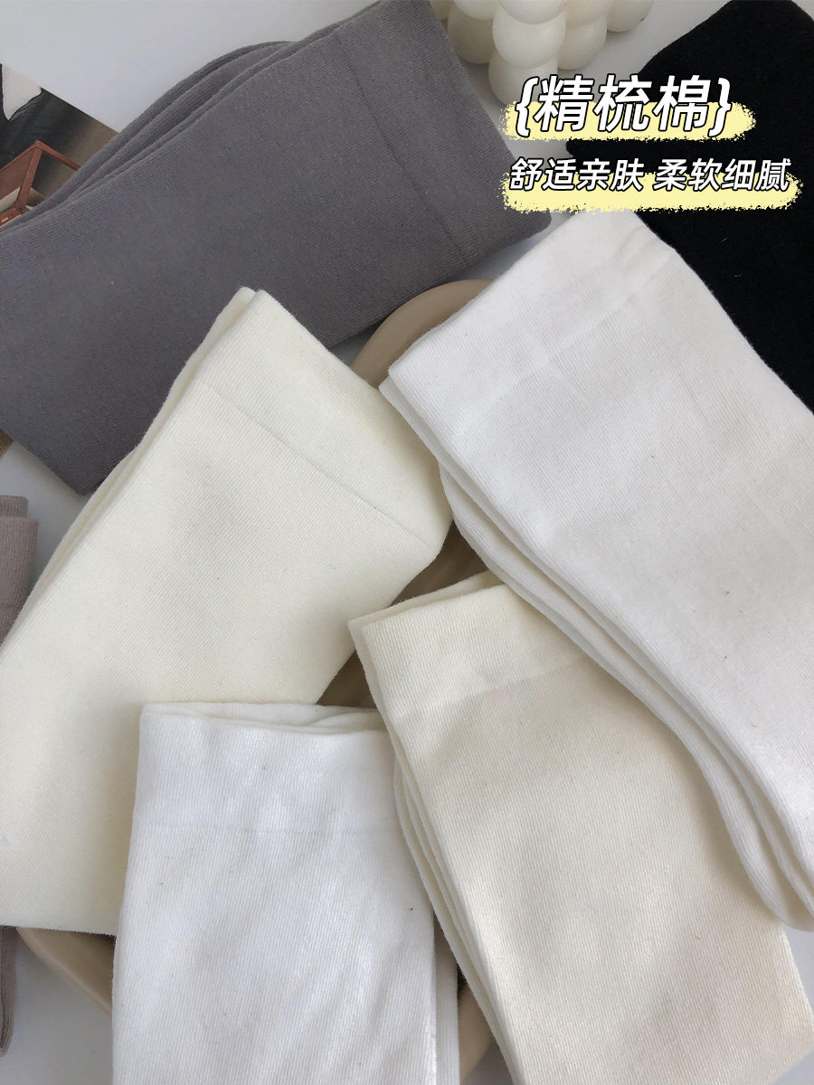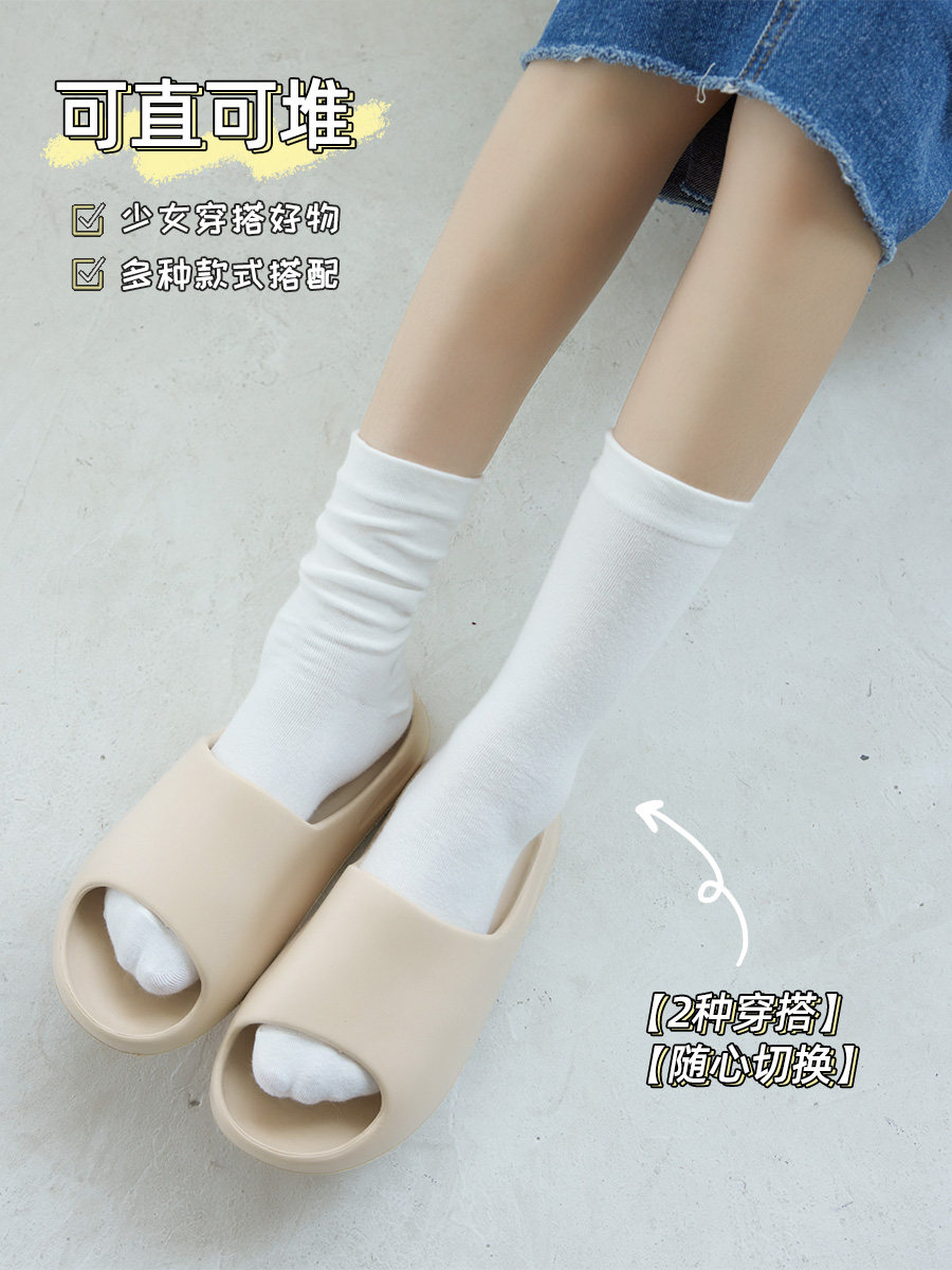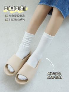 白色袜 中筒纯棉ins潮无骨jk百搭堆堆椰子拖鞋 奶白色袜子夏季 薄款