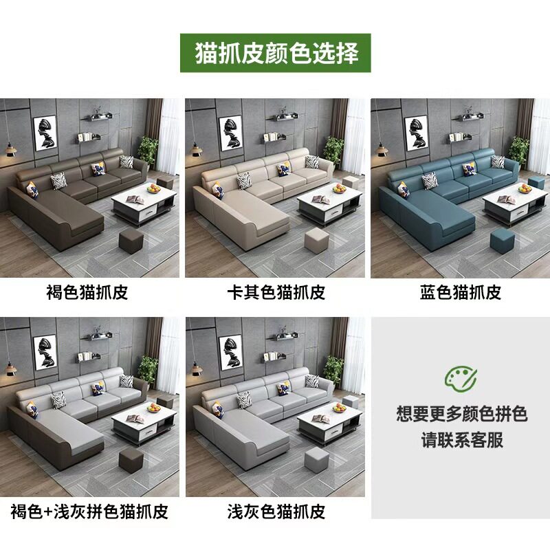 简约现代科技布艺沙发猫爪皮客厅大小户型转角雪尼尔棉麻冬夏两用
