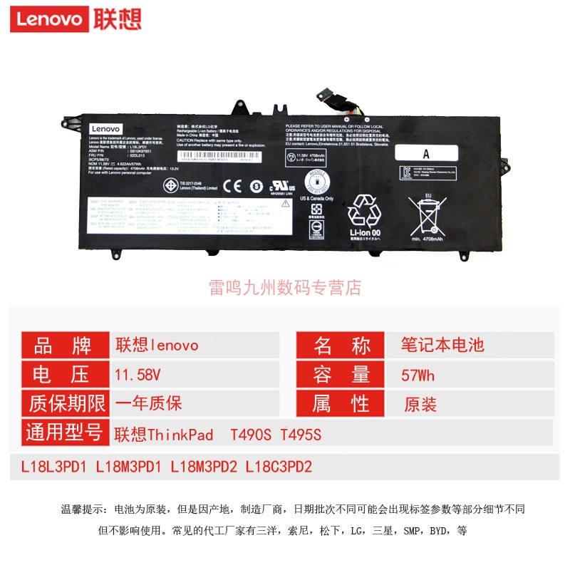 T490S T495S L18C3PD2笔记本电池 联想原装 L18M3PD1 T14s L18L3PD1 L18M39D2 ThinkPad